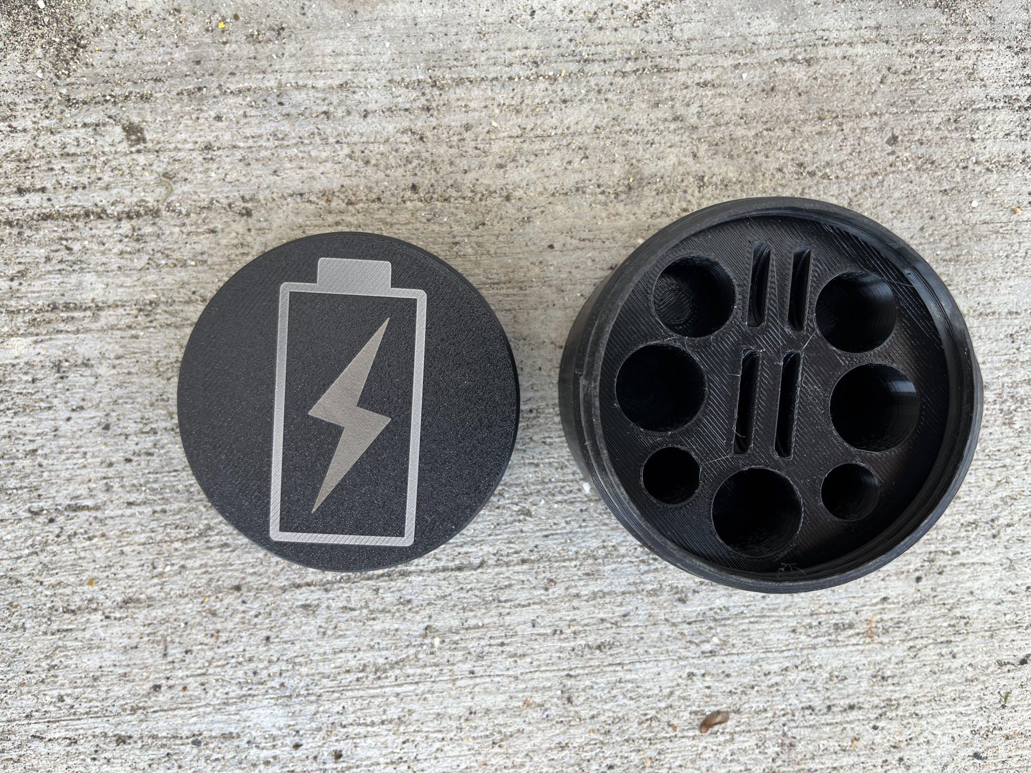 If you need a way to store your batteries for your range bag or in a small stash for a rainy day, you might want this Battery Puck of Luminescence! Printed out of PLA+, this jar will hold AAA, CR123 and coin batteries for your optics and lights.