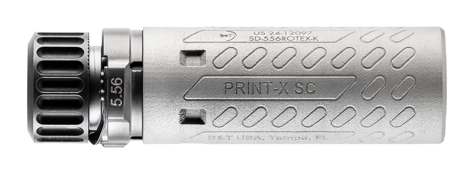 Building upon past designs and utilizing the latest technology, the Rotex556 series of suppressors provide the same versatility and reliability B&T has become known for while significantly reducing signature and flash. Our patented Star baffle design has been integrated into the Rotex556 suppressors along with a redesigned low-flash endcap, 1.375×24 TPI HUB compatibility, a new exterior texture, and bead-blasted finish, all in a lightweight 3D printed package.
